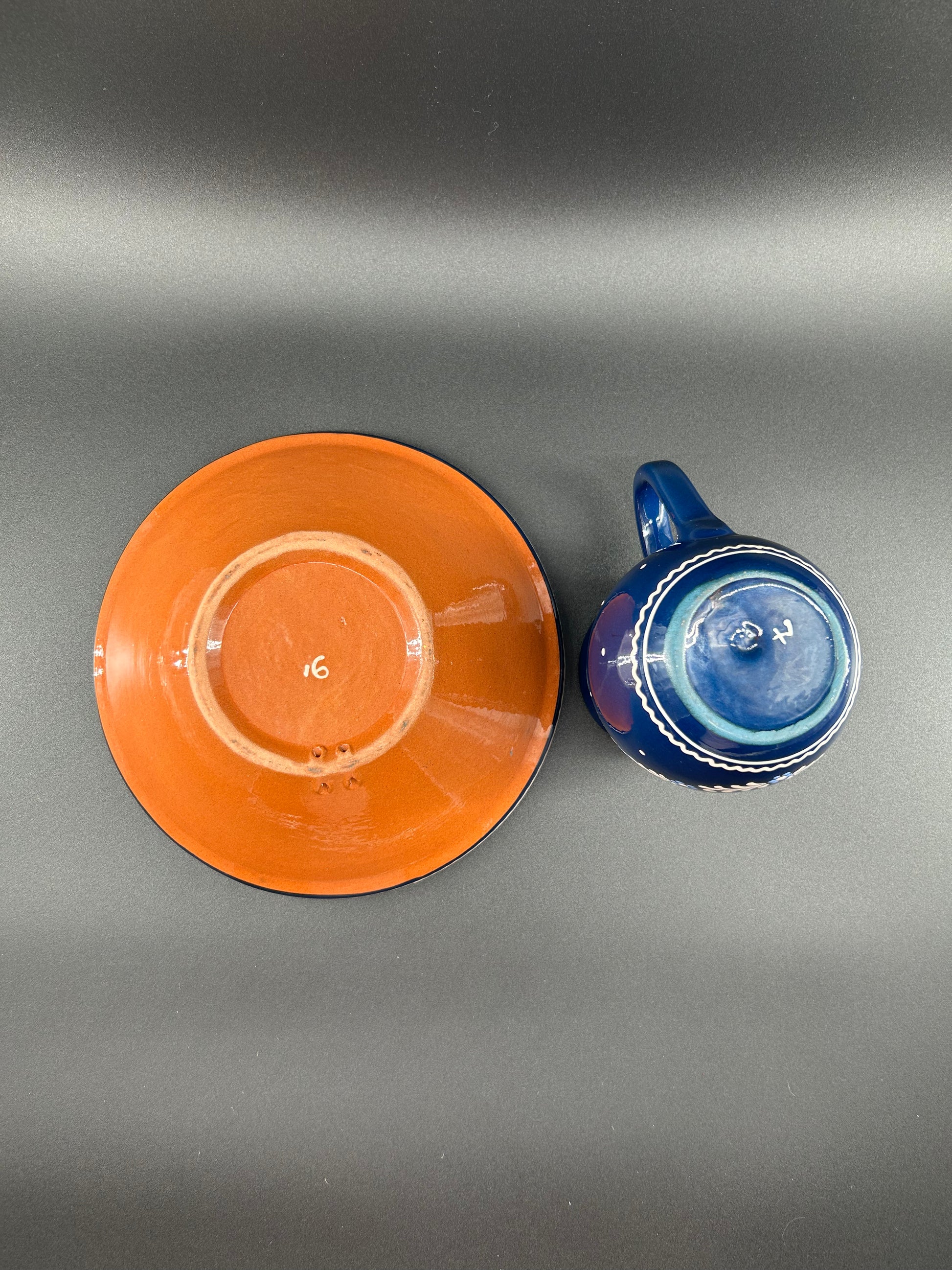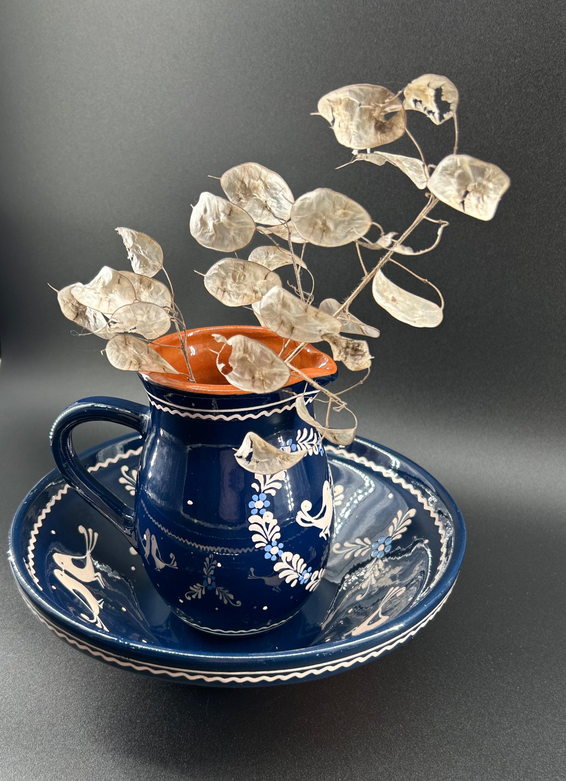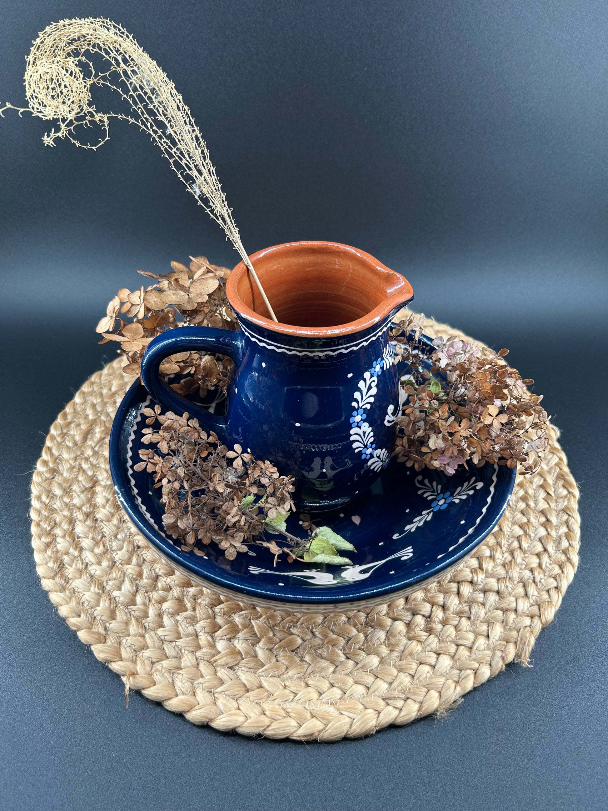 Vintage Eastern-European Redware Pottery Pitcher and Basin Set